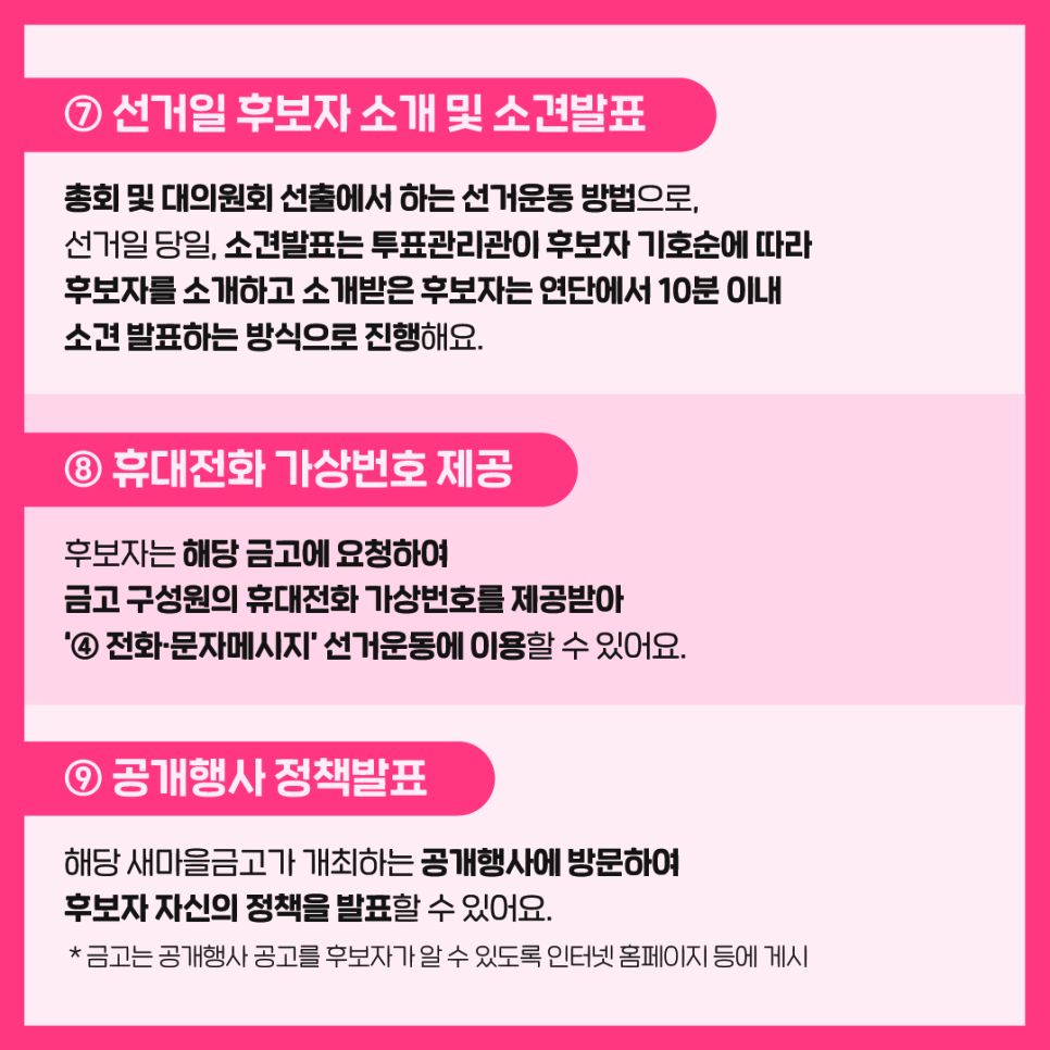 새마을금고이사장선거, 후보자 선거운동 안내