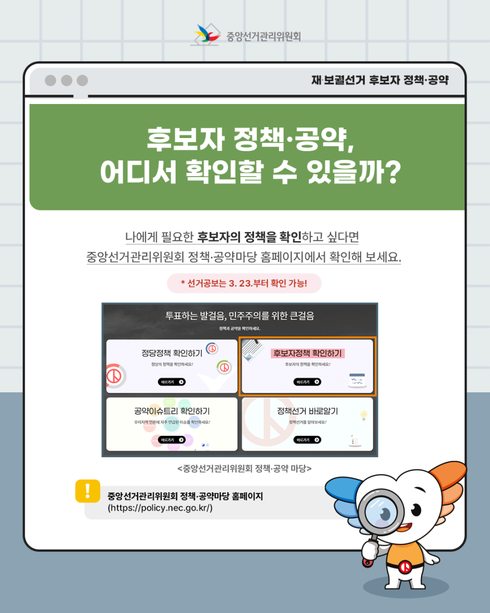 후보자에 대한 충분한 정보와 정책·공약을 알고 있다면 신중하고 올바른 결정을 내릴 수 있겠죠?