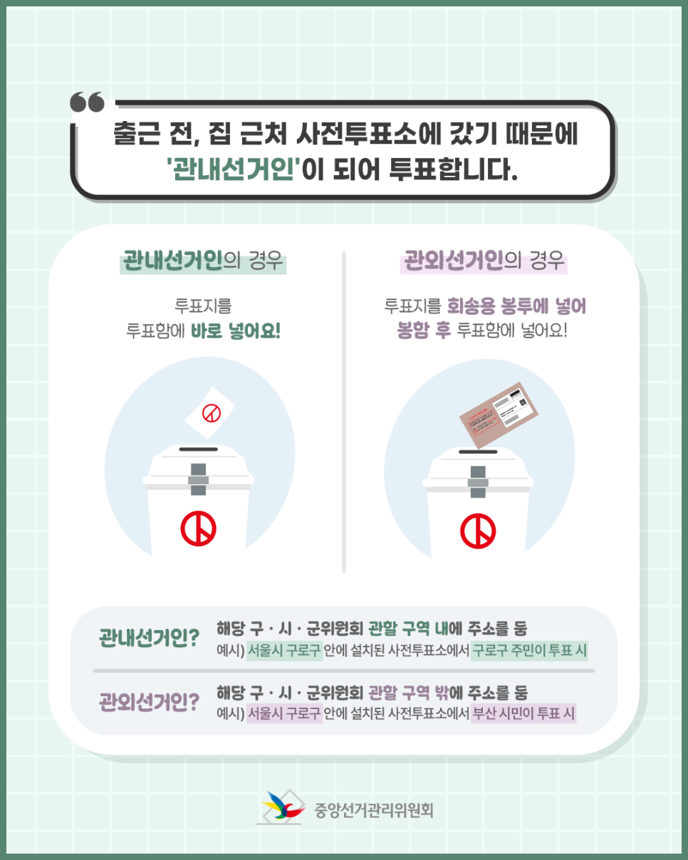 예시) 서울시 구로구 안에 설치된 사전투표소에서 구로구 주민이 투표 시
