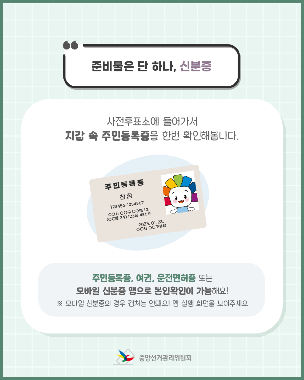 사전투표소에 들어가서 지갑 속 주민등록증을 한번 확인해봅니다.