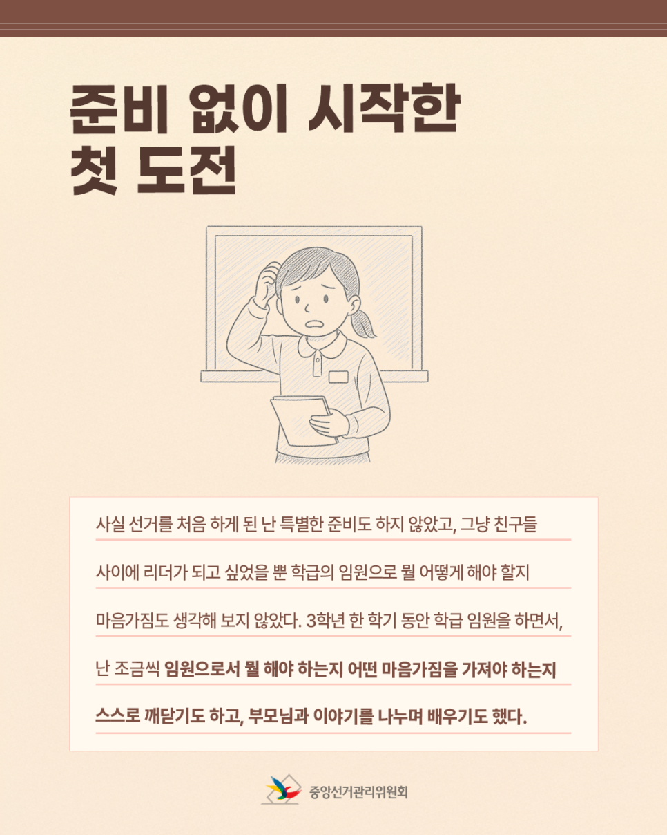 아무런 준비 없이 후보자로 나갔던 3학년 때를 떠 올리며, 선거 전날