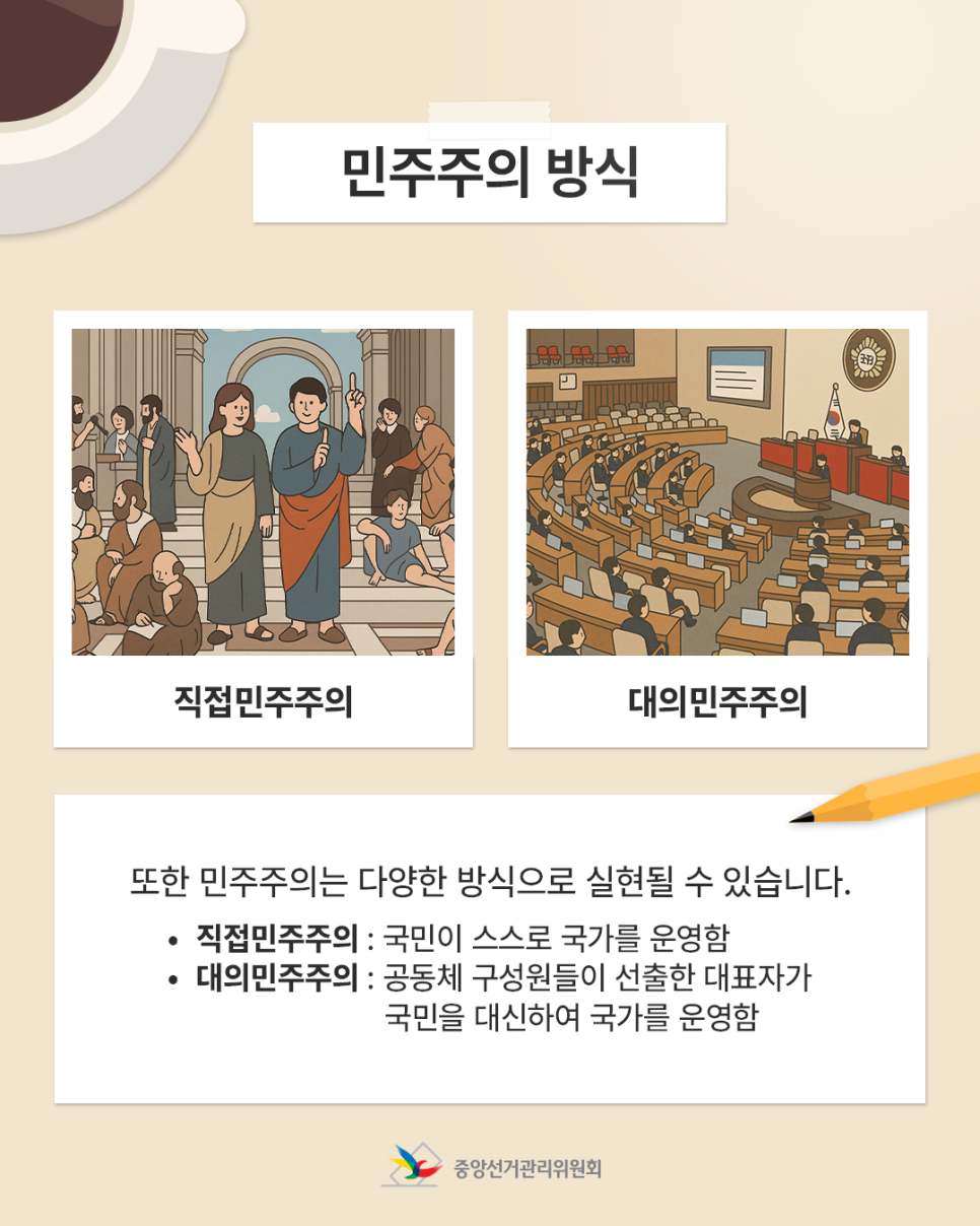 또한 민주주의는 다양한 방식으로 실현될 수 있습니다.