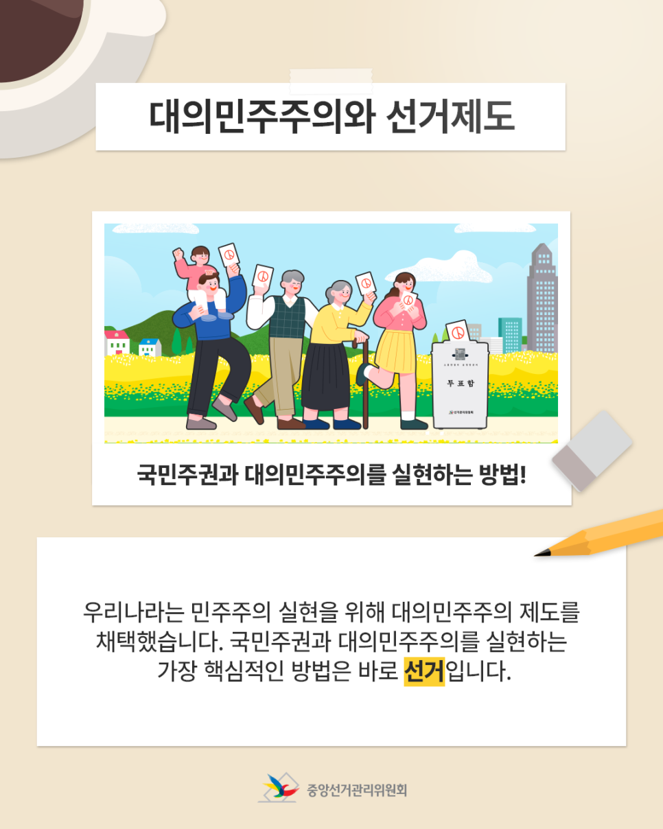 국민주권과 대의민주주의를 실현하는 가장 핵심적인 방법은 바로 선거입니다.