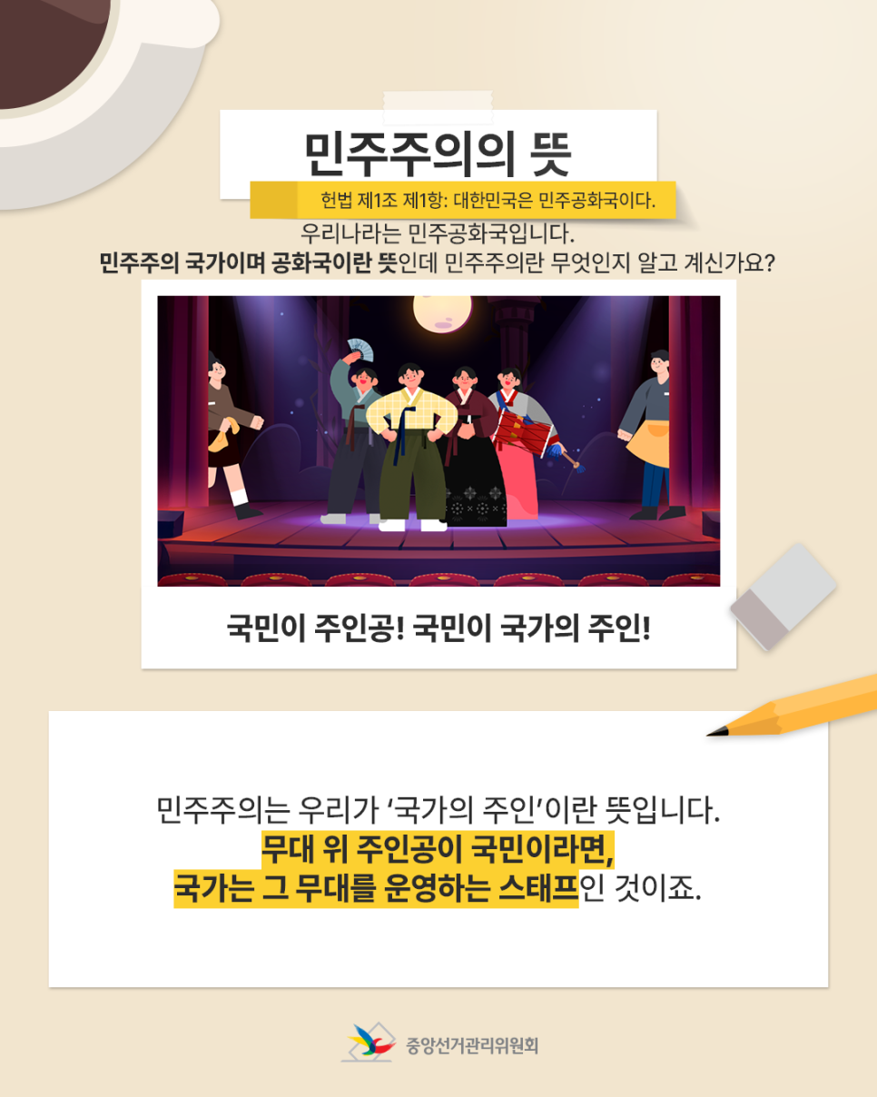 민주주의는 우리가 '국가의 주인'이란 뜻입니다.