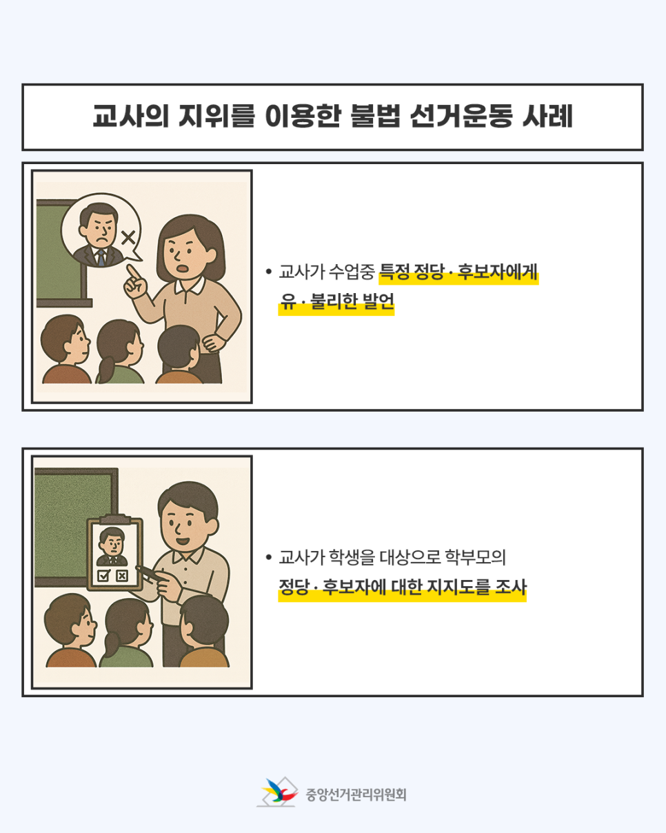 교사의 지위를 이용한 불법 선거운동 사례