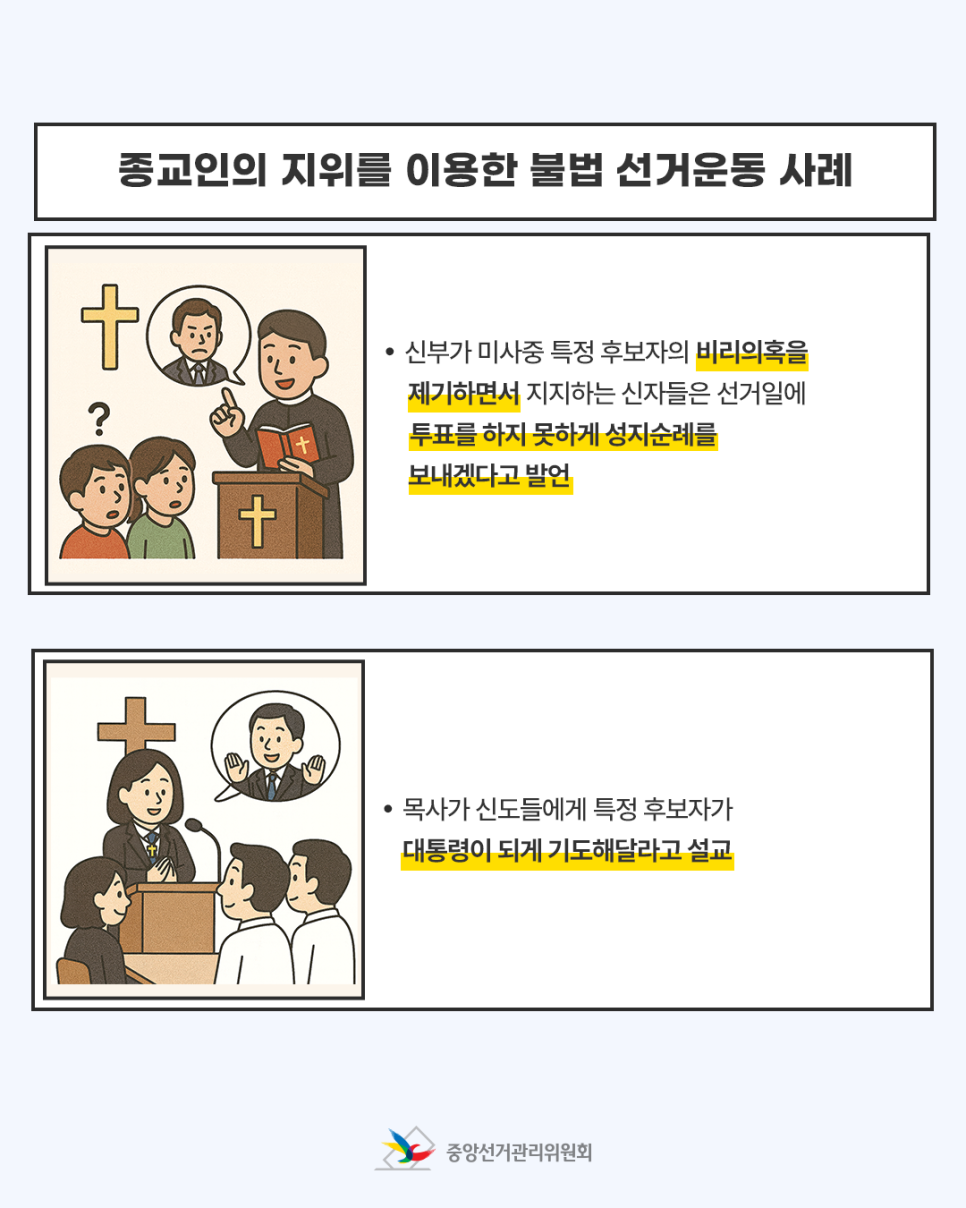 종교인의 지위를 이용한 불법 선거운동 사례