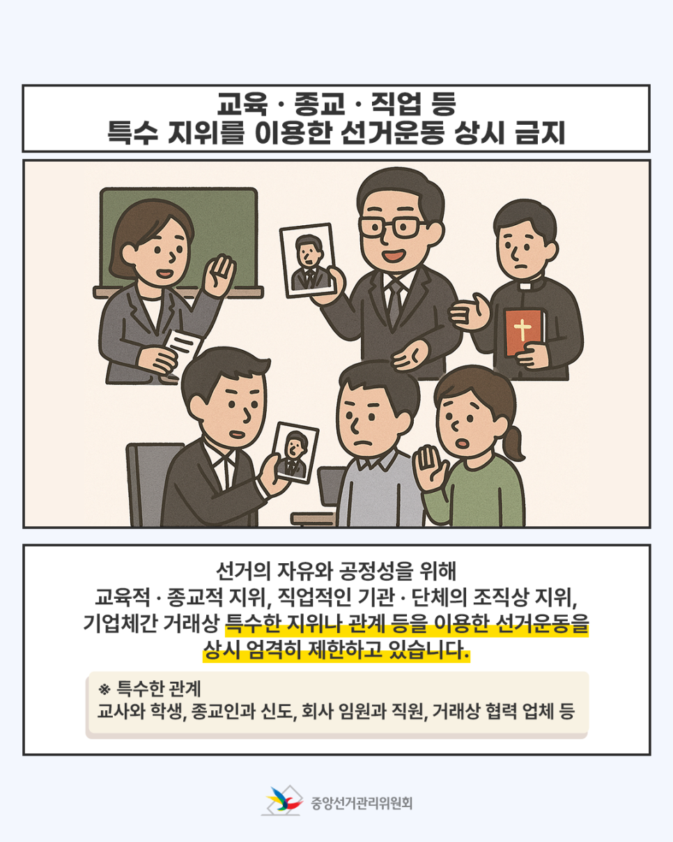 사례로 알아보는 교육 · 종교 · 직업 등 특수 지위를 이용한 선거운동 금지