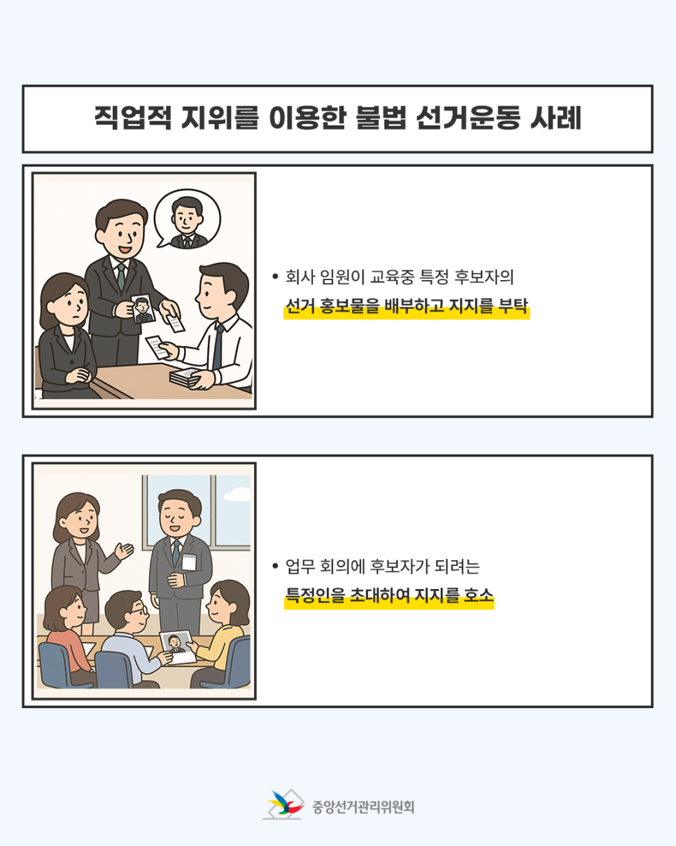 직업적 지위를 이용한 불법 선거운동 사례