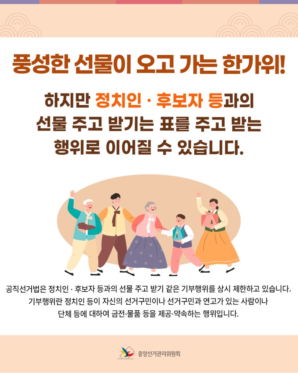 추석 명절, 정치인 · 후보자 등과 선물 주고 받을 때는 조심하셔야 해요