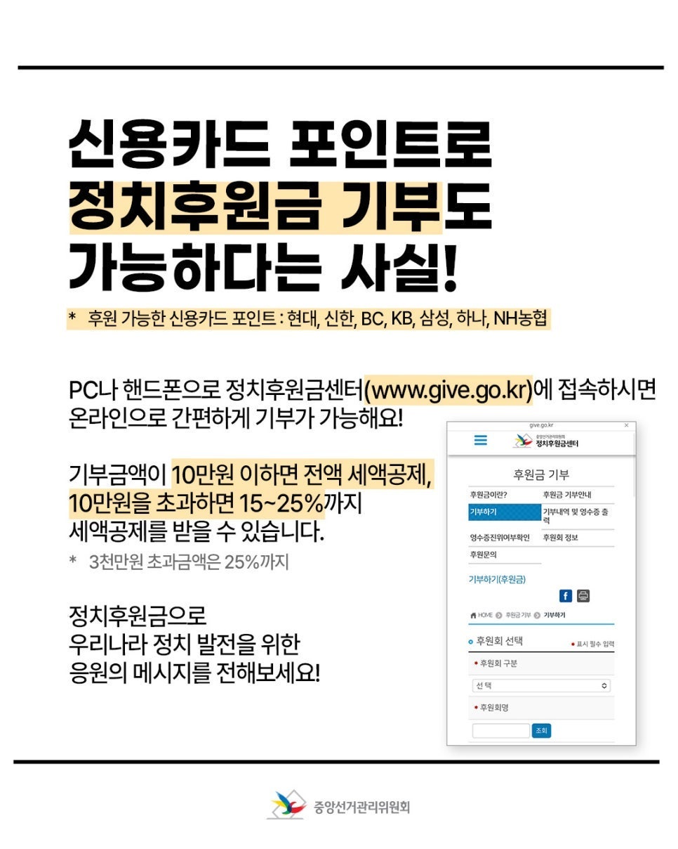 신용카드 포인트로 정치후원금 기부도 가능하다는 사실!