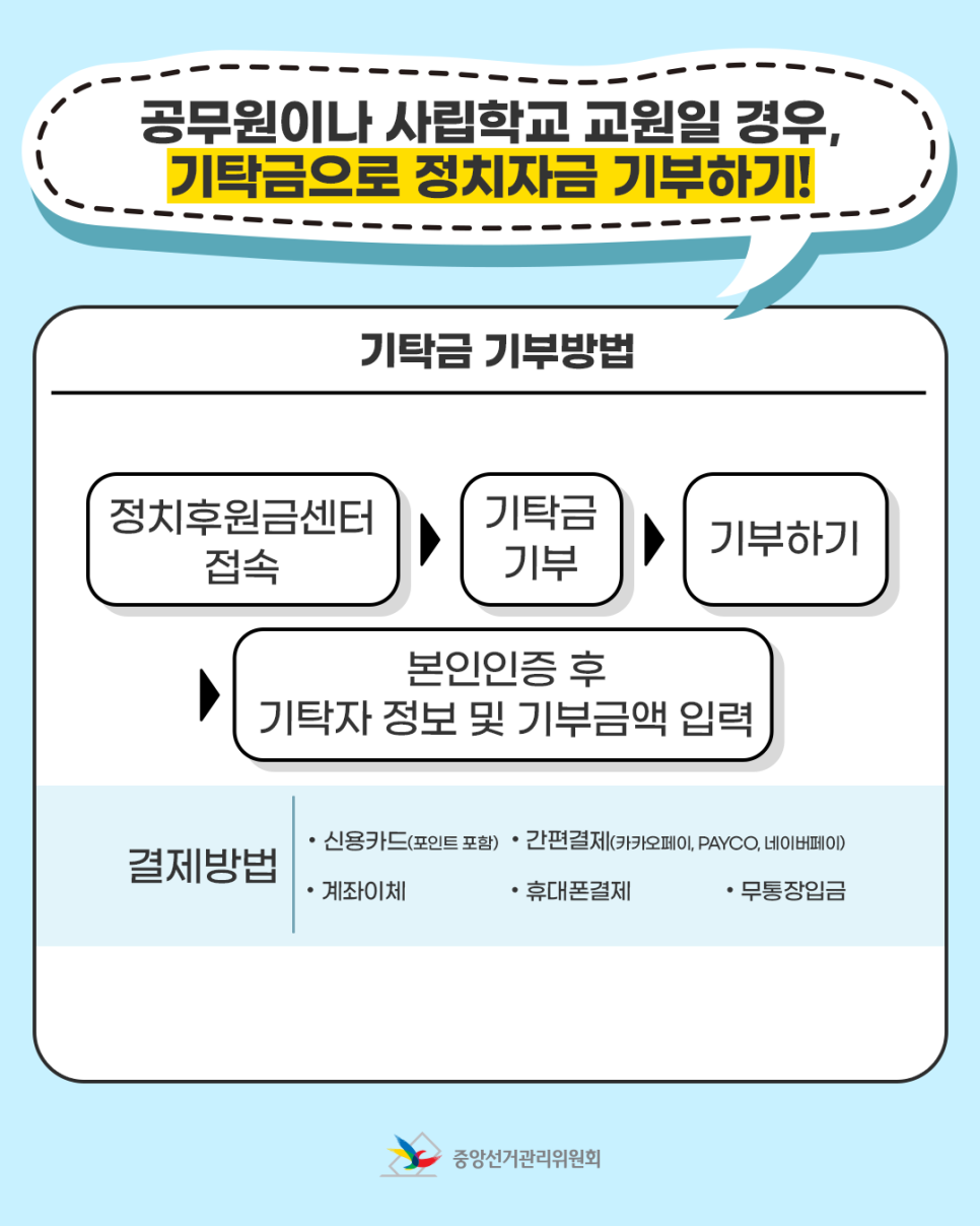 공무원이나 사립학교 교원일 경우, 기탁금으로 정치자금 기부하기!