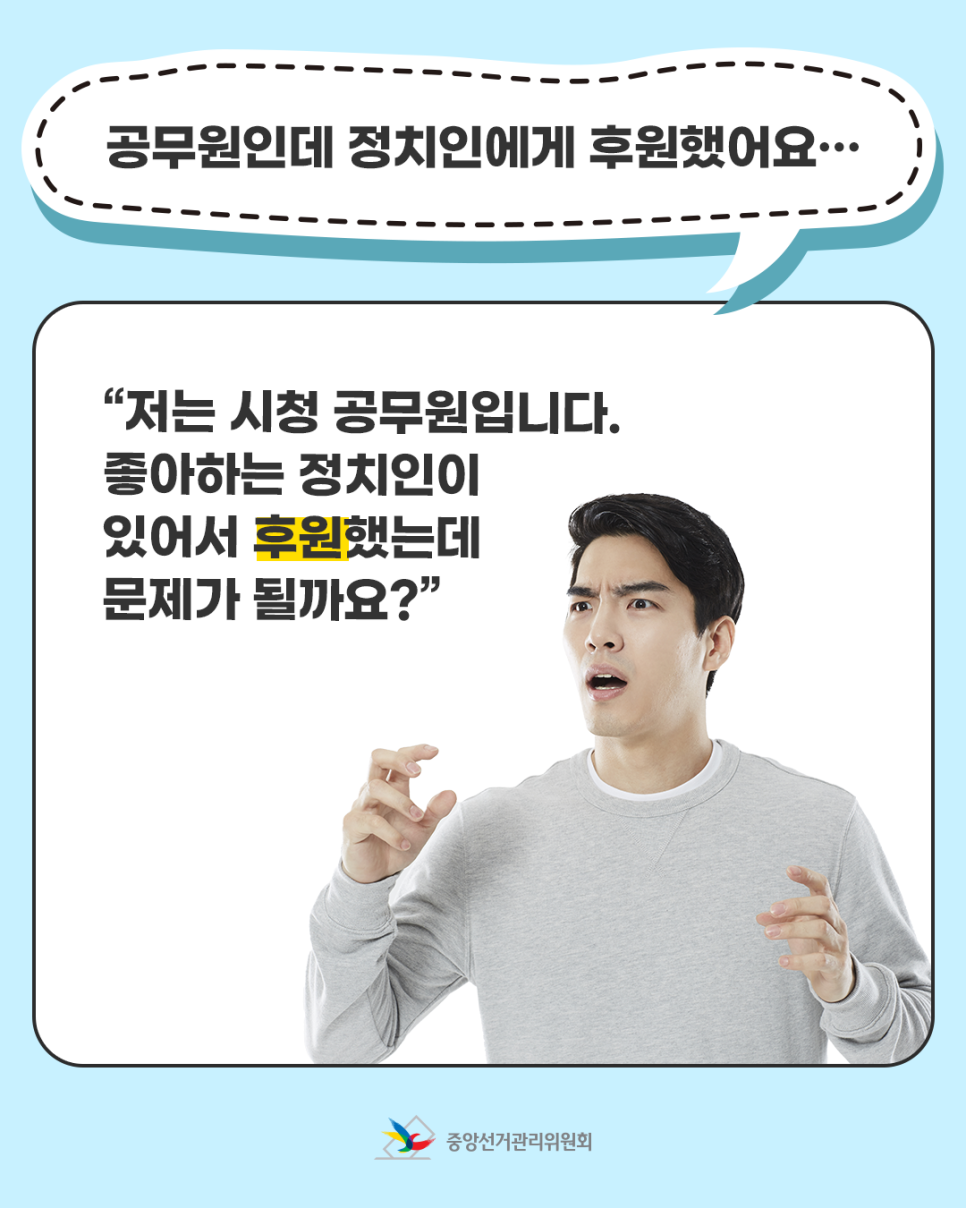 공무원이 후원금을 기부하는 경우 「국가공무원법」 등에 위반될 수 있기 때문이죠!