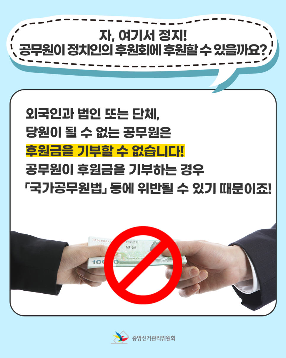 당원이 될 수 없는 공무원은 후원금을 기부할 수 없습니다!