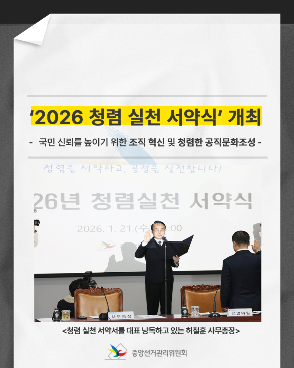 나는 선거관리위원회 공직자로서, 청렴과 공정을 최우선의 가치로 삼아 직무를 성실히 수행하고