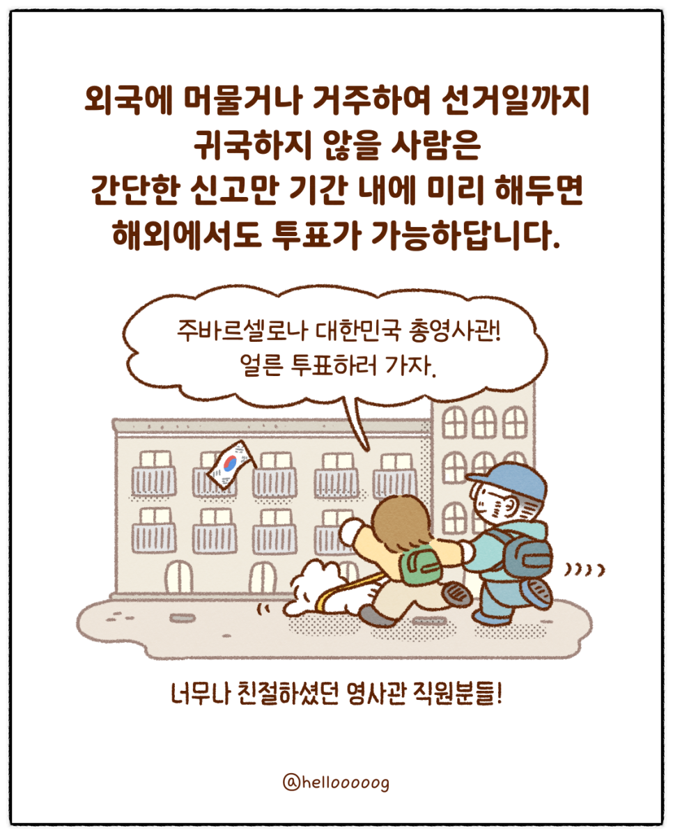 간단한 신고만 기간 내에 미리 해두면 해외에서도 투표가 가능하답니다.