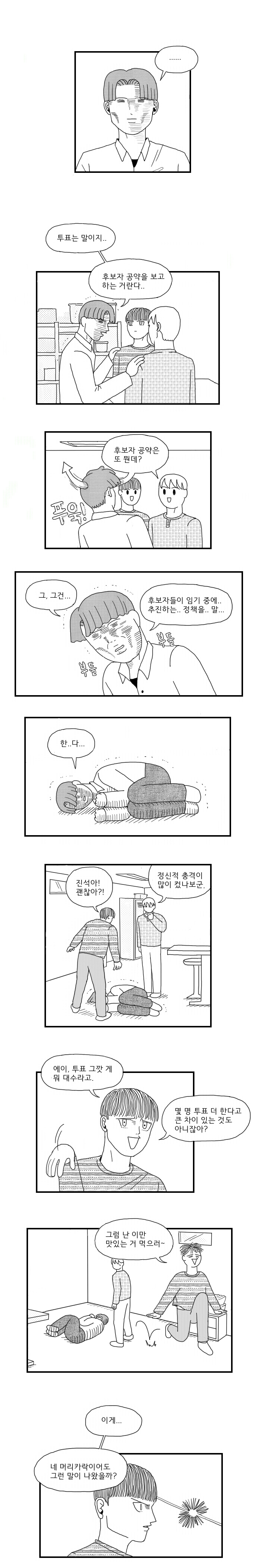 사람2: 에이, 투표 그깟 게 뭐 대수라고.