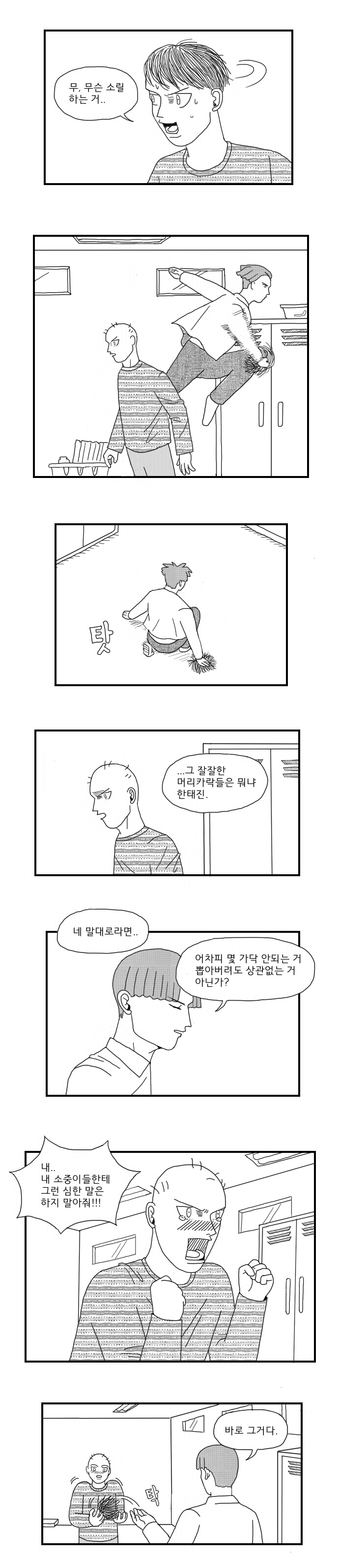 사람1: ...그 잘잘한 머리카락들은 뭐냐 한태진.
