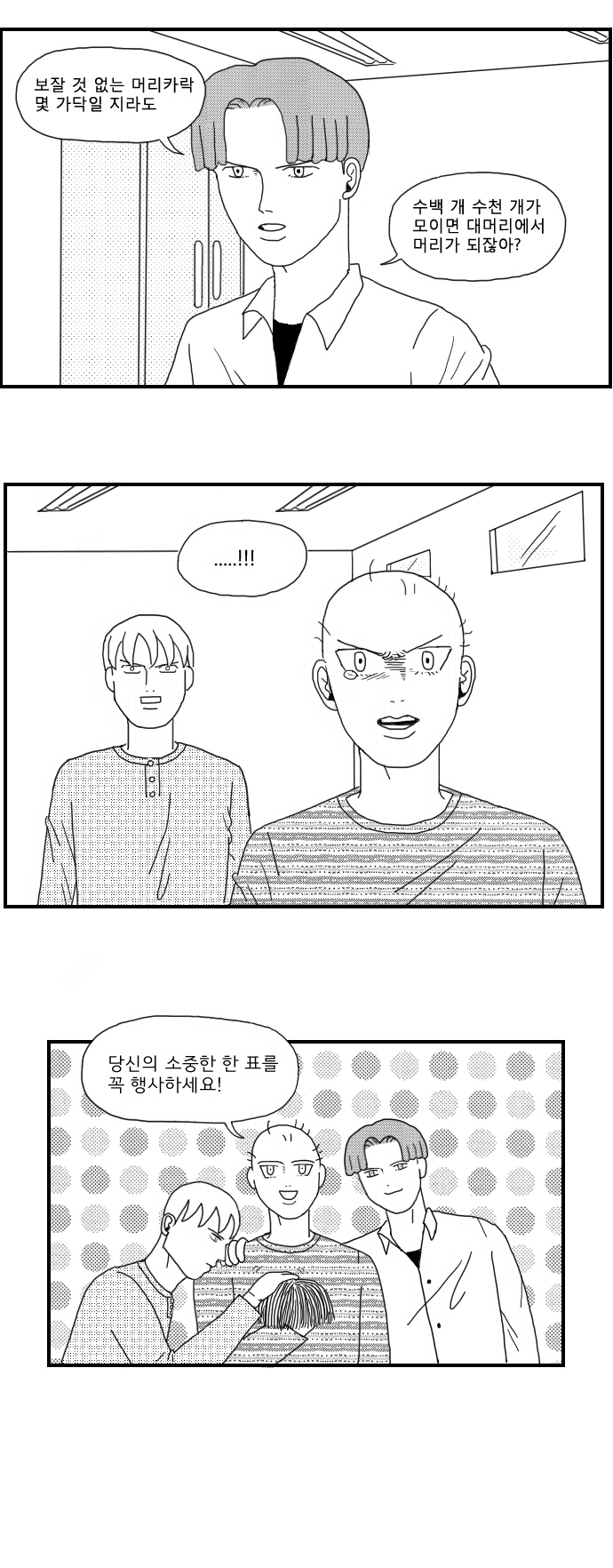 사람1: 어차피 몇 가닥 안되는 거 뽑아버려도 상관없는 거 아닌가?