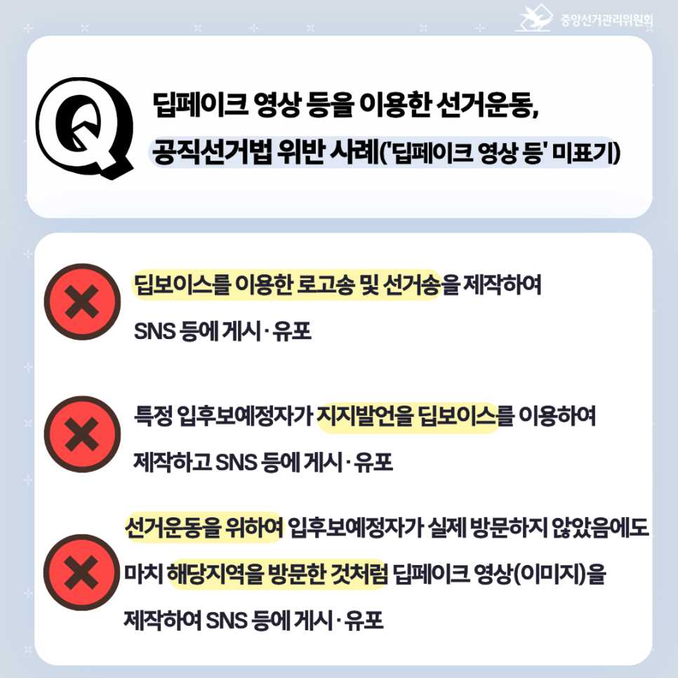 딥페이크 영상 등을 이용한 선거운동 Q&A
