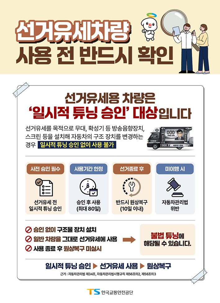 제9회 전국동시지방선거 공개장소연설·대담차량 일시적 튜닝 제도를 안내하오니