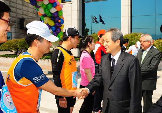 대표주자의 무사 완주를 격려하는 ‘365 울트라마라톤’ 출발 행사가 있었다.