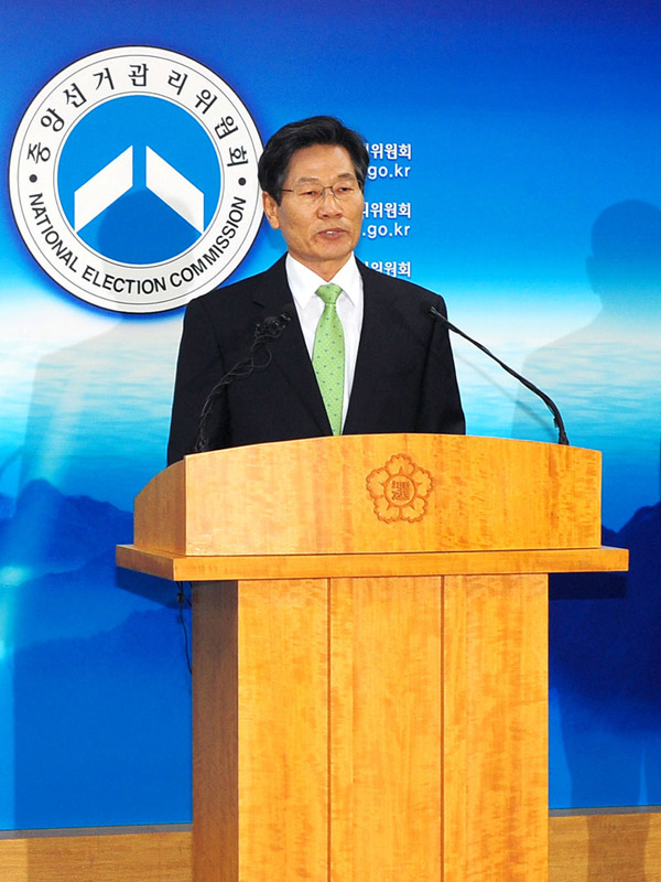 김능환 중앙선거관리위원회 위원장은 제19대 총선을 하루 앞둔 4월 10일 유권자의 올바른 선택과 빠짐없는 투표참여를 호소하는 대국민 담화를 발표했다.