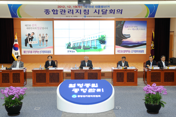 중앙선거관리위원회는 6월 5일 중앙 및 전국 시․도선관위 간부 100여명이 참석한 가운데「제18대 대통령선거 종합관리지침 시달회의」를 열고, 이번 대통령선거를 공정하게 치르기 위한 중점 관리 방향과 분야별 관리대책을 시달하였다.