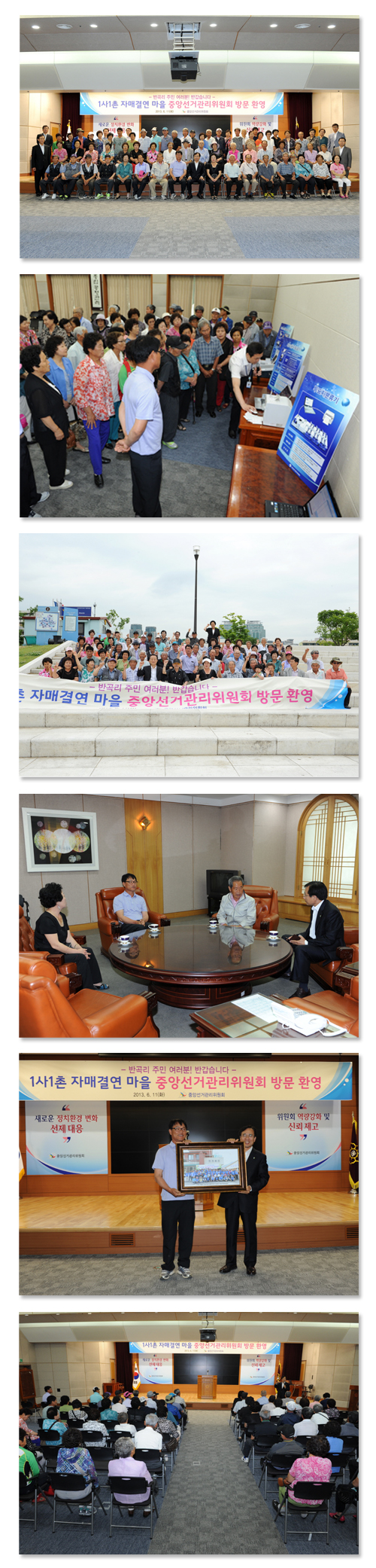 문상부 사무총장은 앞으로도 지속적인 교류를 통해 자매결연 마을과 선거관리위원회의 유대관계가 더욱 돈독해 지기를 기대한다고 밝혔고, 반곡리 마을대표(권철중 이장)는 중앙선관위 방문을 통해 선거관리위원회의 역사와 발전상황을 한 눈에 볼 수 있는