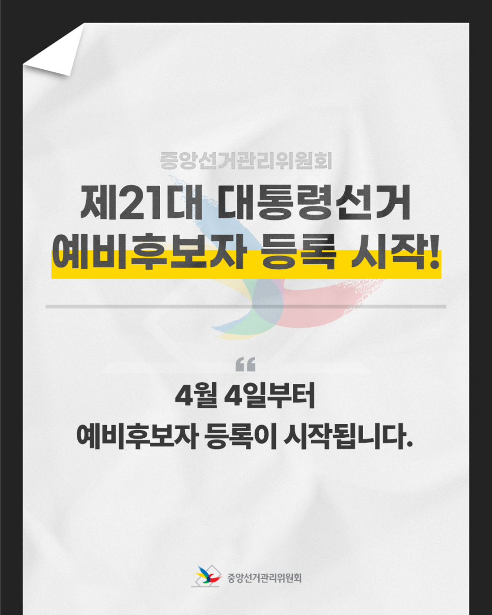 "4월 4일 부터 예비 후보자 등록이 시작됩니다."