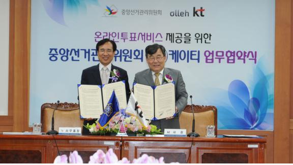 Easy and Convenient Election for representatives of apartment residents via Smart phones = The NEC and KT held an MoU Signing Ceremony for Internet Mobile Voting Service = The National Election Commission(NEC) held an MOU Signing Ceremony with KT(Korea Telecommunication) to provide Internet Mobile Voting Service to the public on June 4. ![]() At this ceremony, the NEC and KT agreed to cooperate each other for stable management of Internet Mobile Voting Service which is a service progressed for social responsibility and improved public awareness on internet voting. The Internet Mobile Voting Service combines the NEC''s expertise and experiences in managing elections as well as KT''s ICT and infrastructure: it is expected to raise the turn out with easy and convenient voting method simply using a computer or smart phone. In addition, the voting and counting process can be streamlined with internet voting instead of using a ballot paper. ![]() Secretary general of the NEC, Mr. Moon Sang-Boo, and CEO of KT Global&Enterprise, Kim Hong-Jin participated in this event. Mr. Moon said that Internet Mobile Voting Service enables the public to easily cast a vote anywhere via a computer or mobile phone, which will eventually activate the online participation of the public and resolve social conflicts. In addition, it will be significantly helpful in making a social consensus on adopting electronic voting/counting system to the public official election. In addition, Mr. Kim said that KT will concentrate all efforts in Internet Mobile Voting Service with stable communications infrastructure and state-of-the-art IT. It will contribute to the development of democracy by providing the opportunity to participate for the public. The service will be applied on neighborhood elections like elections for school or representatives of apartment residents from July in earnest. The NEC expressed its expectation that this service will be beneficial for elections of elementary, junior high and high schools, elections of executives in private sector that needs publicness and voting for deciding policies in public sector. Especially, it will show its real worth at the election for representatives of apartment residents which has had doubts about representativeness because of the low turnout. |