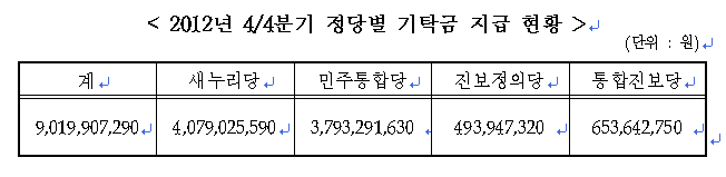 중앙선거관리위원회는 지난 해 10월부터 12월까지 국민들이 선관위에 기탁한 정치자금 90억여 원을 1월 14일 4개 정당에 전달하였다.