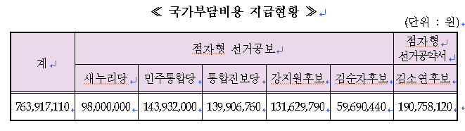 제18대 대선 선거비용 보전 919억여 원 지급