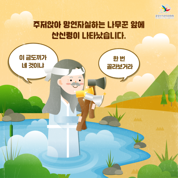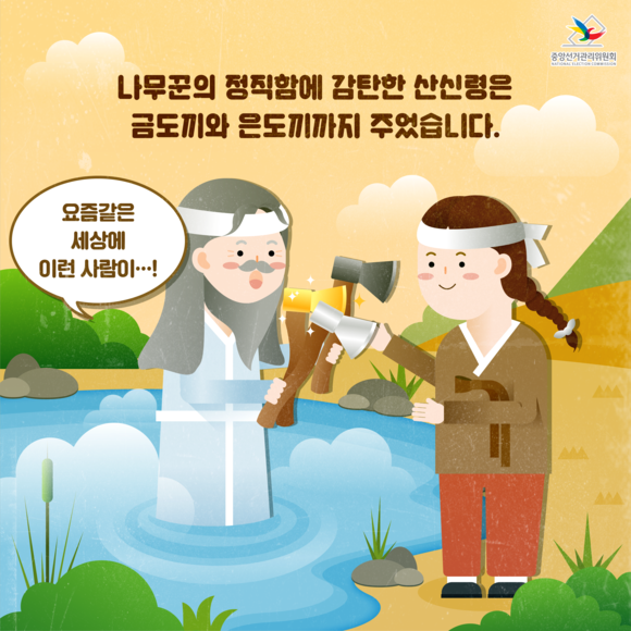 산신령이 정직한 나무꾼을 도와준 것처럼,