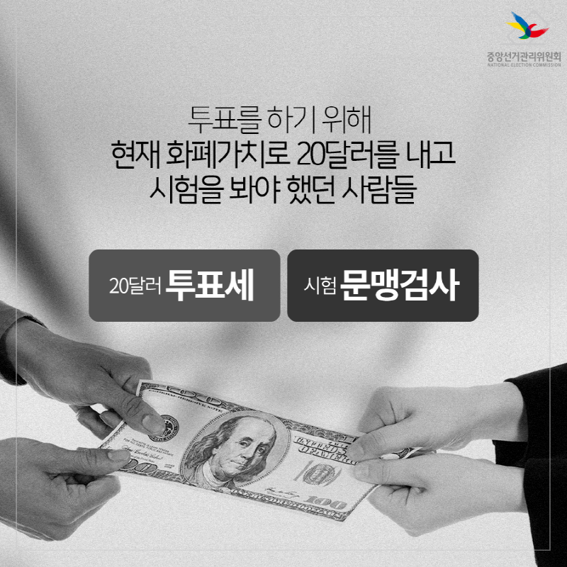 하지만 불과 54년 전, 미국에서는 오히려 투표를 하기 위해 돈을 내야했던 사람들이 있었는데요.