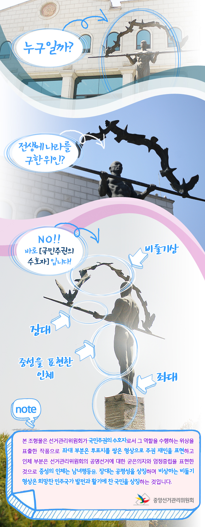 본 조형물은 선거관리위원회가 국민주권의 수호자로서 그 역할을 수행하는 위상을