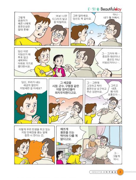 큰일이에요. 대통령이나 국회의원을 뽑는 데는 관심을 가지면서도 정작 우리 민생을 책임지고있는 지역일꾼을