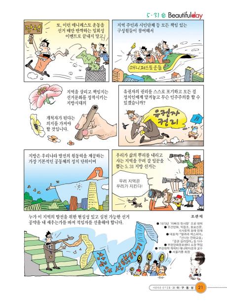 우리가 삶의 뿌리를 내리고 사는 지역을 꾸려 갈 일꾼을 뽑는 5.31 지방 선거는 누가 이 지역의 발전을 위한