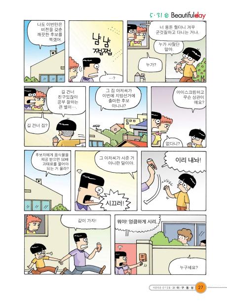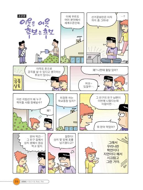길 건너 집? 그 집 아저씨가 이번에 지방선거에 출마한 후보 아니니?