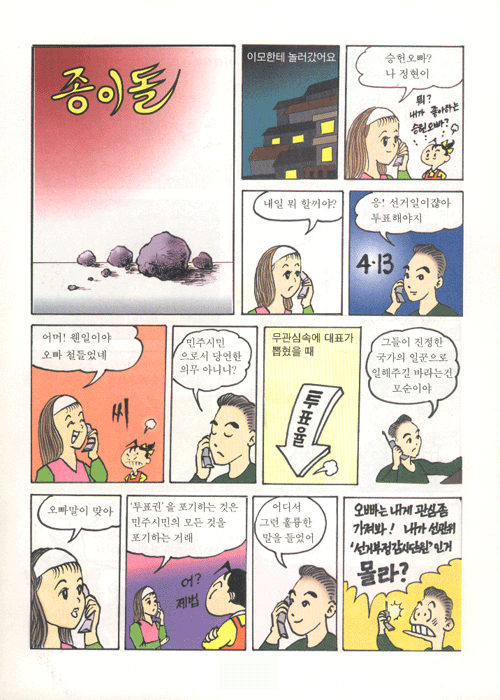 우리 4월 13일 '종이돌'을 힘껏 던지는거야. 대한민국의 미래를 위해