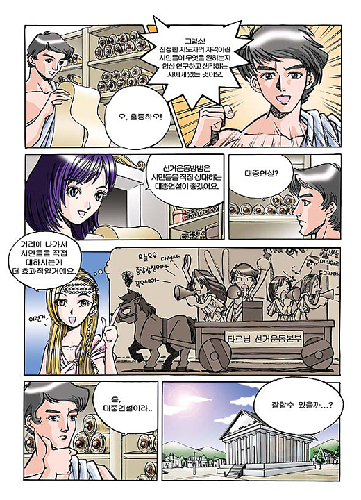선거운동방법은 시민들을 직접ㅈ 상대하는 대중연설이 좋겠어요.