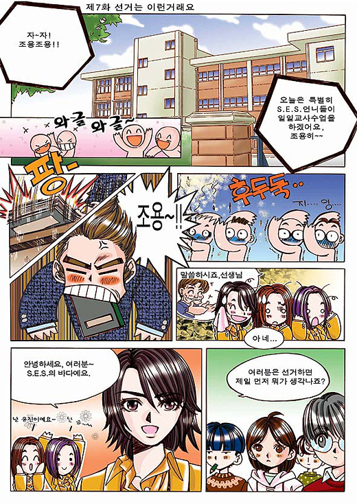 자~자! 조용조용! 오늘은 특별히 S.E.S. 언니들이 일일교사수업을 하겠어요, 조용히~