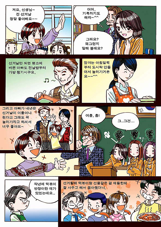 작년에 떡볶이 반장이란 애가 있었는데요, 선거할때 떡볶이랑 선물같은 걸 애들한테 잘 사주고 해서 뽑아줬더니