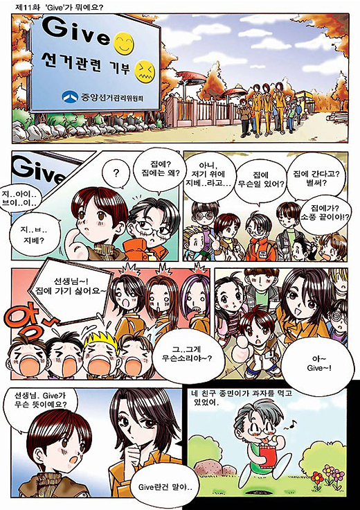 일단 선거에 나간 애들이 주는건 다~ 얻어먹구요. 맨 마지막에 제일 괜찮은 친구를 반장으로 뽑는거에요