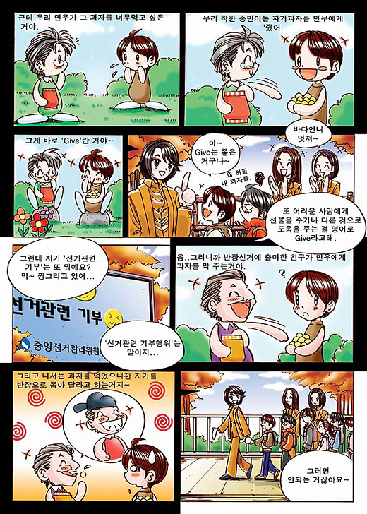 음... 그러니까 반장선거에 출마한 친구가 민우에게 과자를 막 주는거야. 그리고 나서는 과자를 먹었으니까