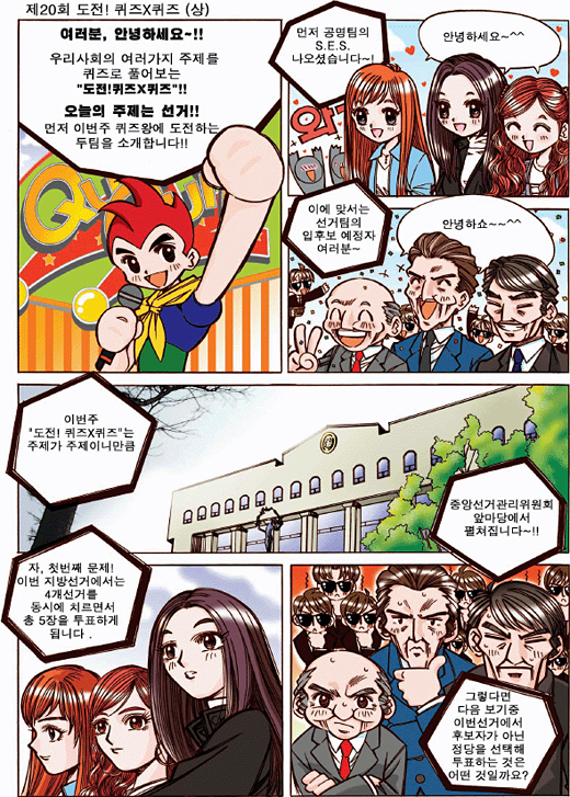 오늘의 주제는 선거! 먼저 이번주 퀴즈왕에 도전하는 두팀을 소개합니다.