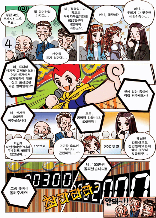 네, 정답은 천만원입니다! 여러분, 선거범죄는 꼭 신고해주세요!!