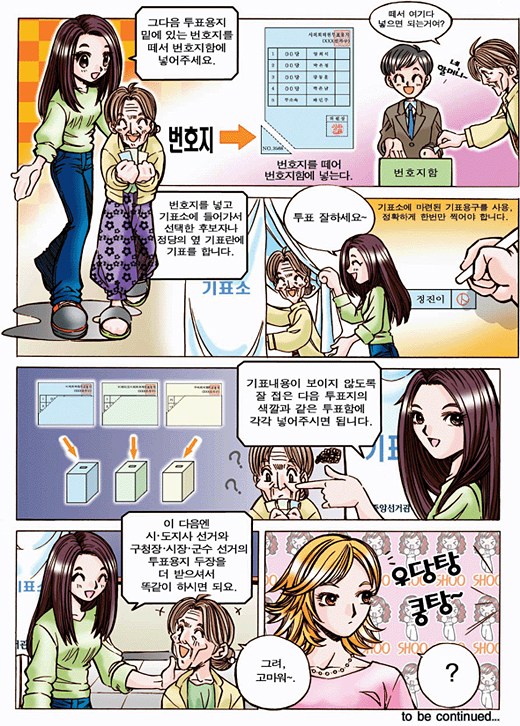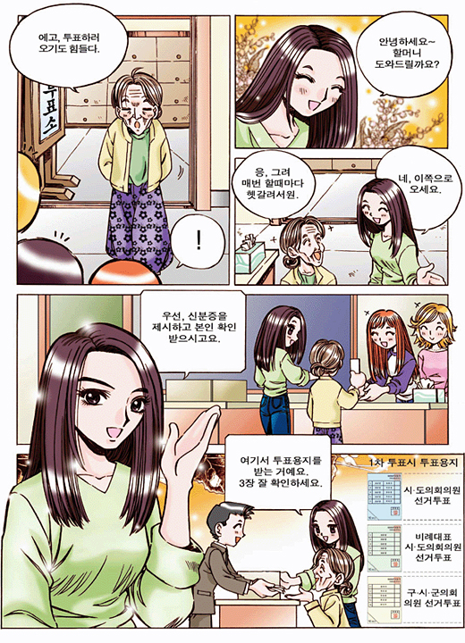 네, 그리구요.. 이제 옆으로 가셔서 투표용지 받으신 다음 투표하시면 되요.