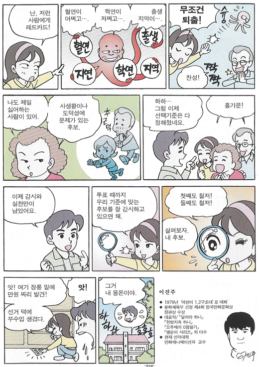 난 저런사람에게 레드카드! 혈연이 어쩌고 학연이 저쩌고 출생지역이.. 무조건 퇴출! 찬성!