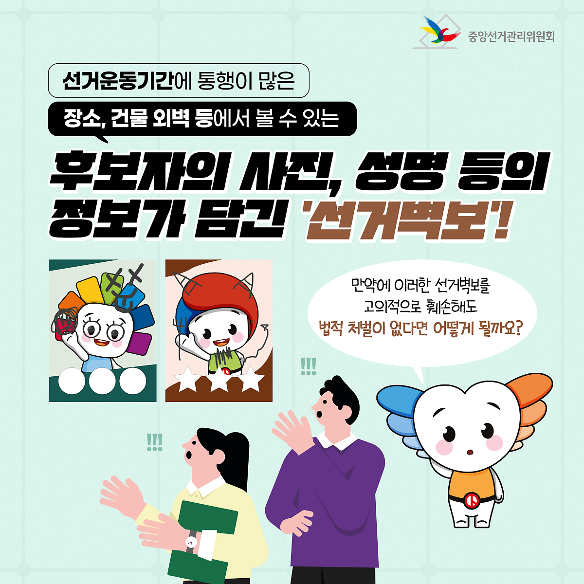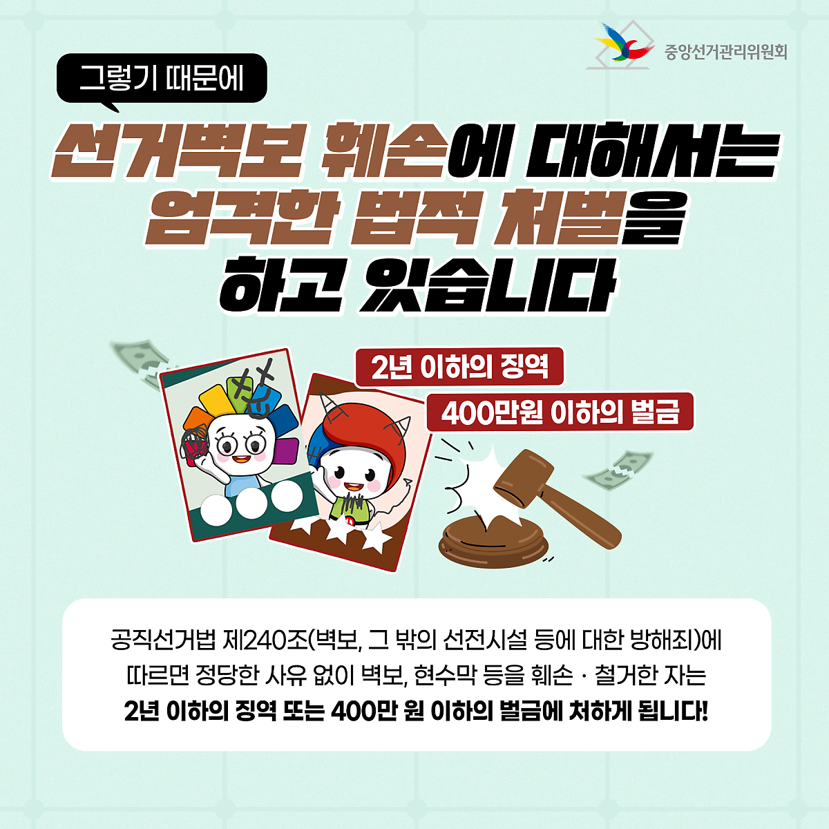 그렇기 때문에 선거벽보 훼손에 대해서는 엄격한 법적 처벌을 하고 있습니다.
