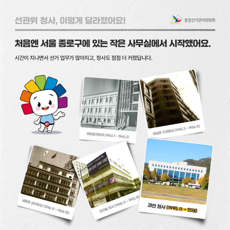 시간이 지나면서 선거 업무가 많아지고, 청사도 점점 더 커졌답니다.